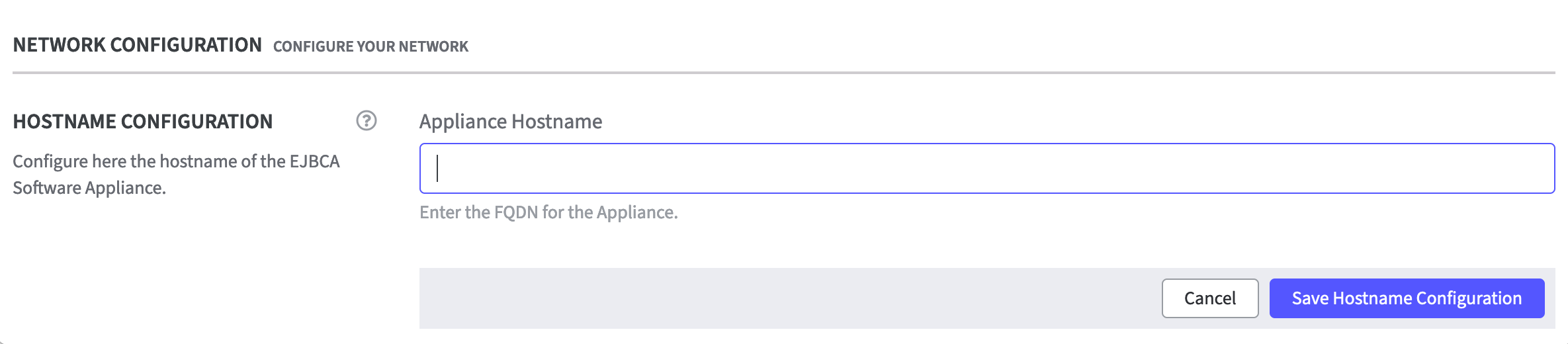 - In the section Hostname Configuration you are requested to add a valid Fully Qualified Domain Name (FQDN).