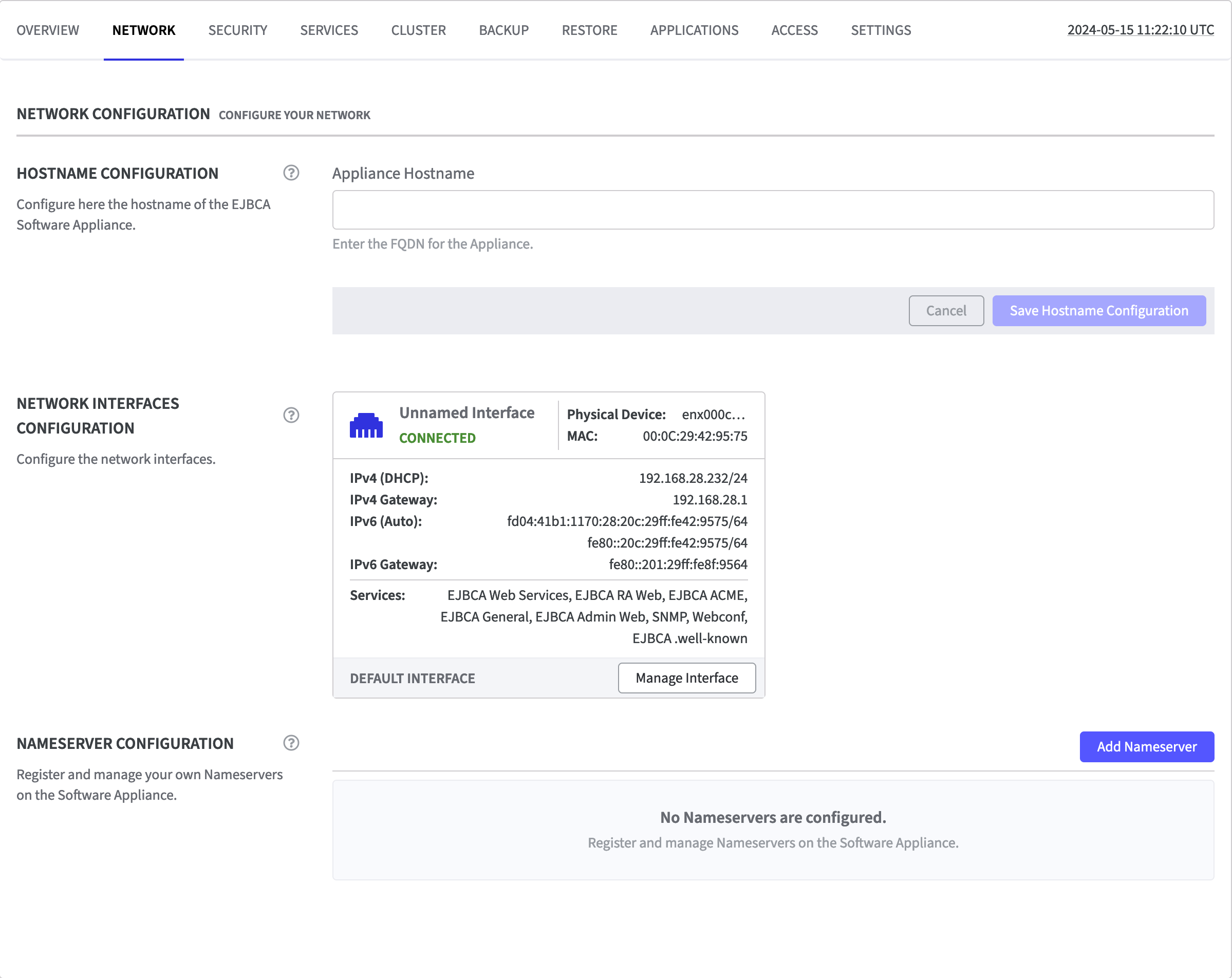 It is possible to configure a Hostname for the Software Appliance.