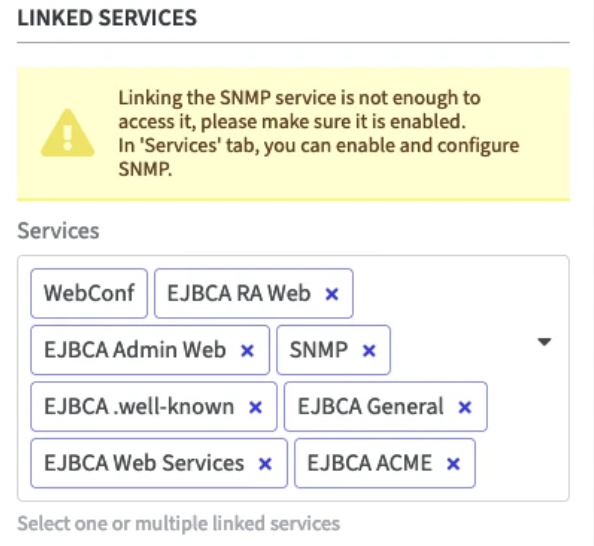 Linked Services: use the drop-down menu to specify which services should be available on the network interface.