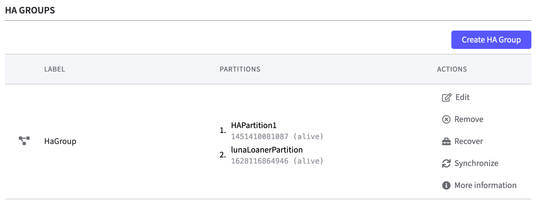 Ensure that all requirements described in the Thales Luna Documentation Archive under "Setting up an HA Group" are taken into account. For more information, see Set up an HA Group.