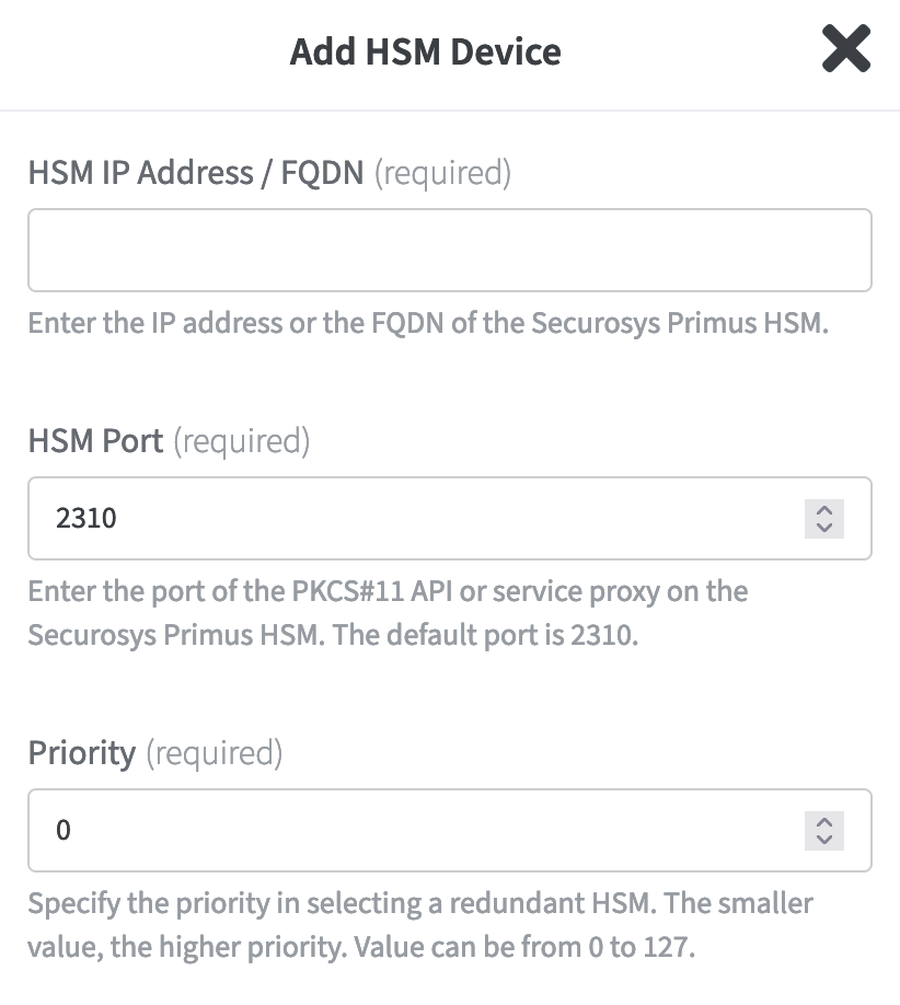 For more information on how to set the priority, please refer to the Securosys Primus HSM or Securosys CloudHSM product documentation that you received when you purchased the HSM.