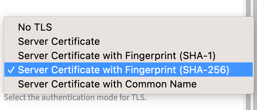 Select the Mutual Authentication for the TLS. There is a selection of Mutual Authentications in the drop down menu, each tied to their specific requirements.