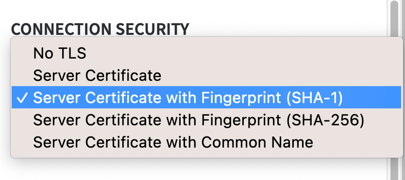 Upload the Server Certificate and enter its SHA-1 as the Authentication Value.