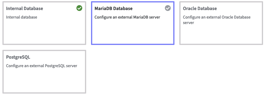Database IP Address / FQDN (required): Enter the IP address or the FQDN (Fully Qualified Domain Name) of the external MariaDB database.