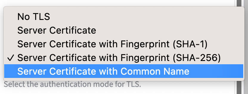 Select the Mutual Authentication for the TLS. There is a selection of Mutual Authentications in the drop down menu, each tied to their specific requirements.