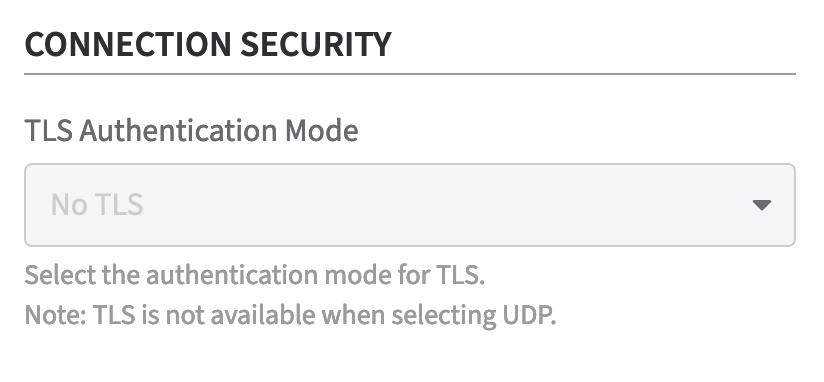 - If the UDP Protocol is selected, TLS Authentication Mode is not available.